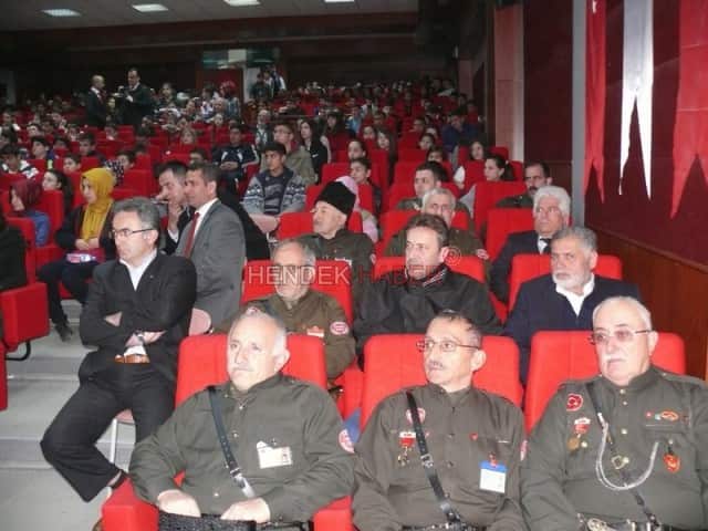 Program, Hendek Belediyesi Ticaret Merkezi Konferans Salonu’nda düzenlenen programla devam etti. Programa, Kaymakam Mehmet Yıldız, Garnizon Komutanı Yzb. Hasan Dağcı, Belediye Başkan Yardımcısı Sinan Baylan, İlçe Emniyet Müdürü İsmail Baş, AK Parti Sakarya Milletvekili Aday Adayı Ali İnci, Gaziler, siyasi parti temsilcileri, sivil toplum kuruluşları temsilcileri, okul müdürleri, öğretmenler, veliler ve öğrenciler katıldı.