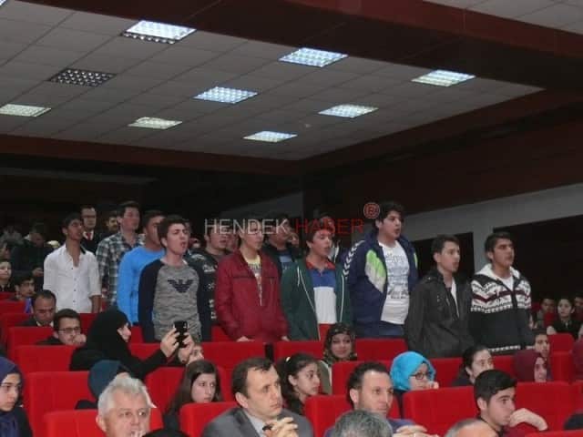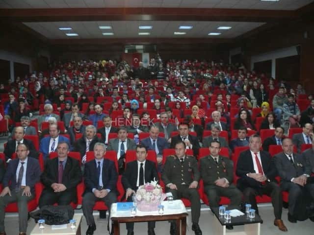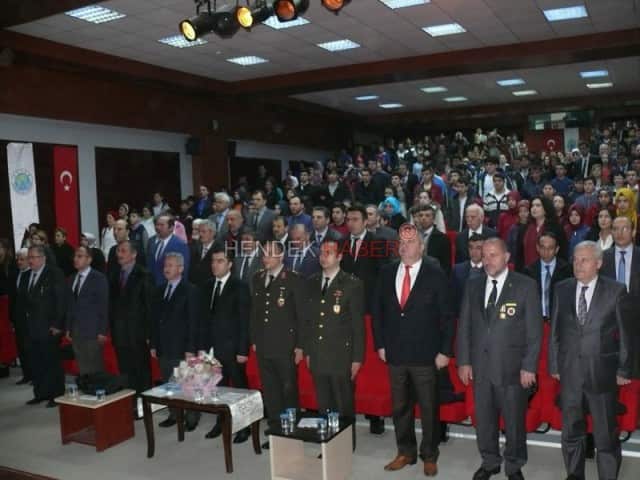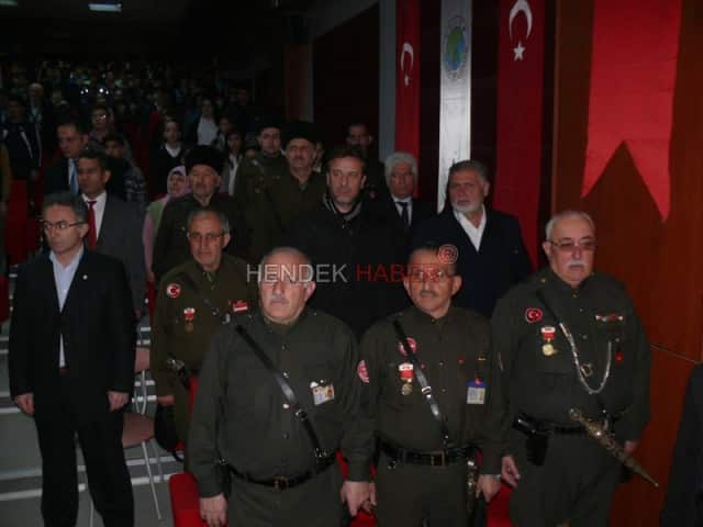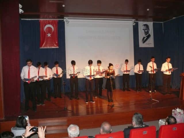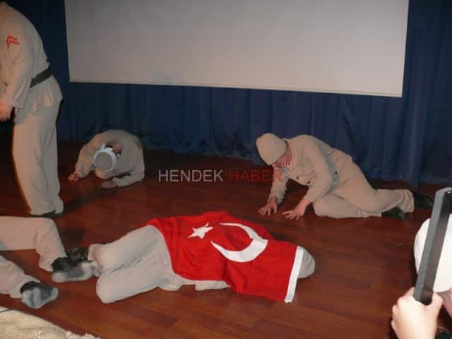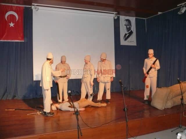 Hendek A.K.V. Meslek Teknik Anadolu Lisesi öğrencilerinin hazırlayıp sunduğu 18 Mart Şehitleri Anma ve Çanakkale Zaferi programı saygı duruşu ve İstiklal Marşı’nın okunmasıyla başladı. Slayt gösterisinin ardından öğrenciler tiyatro oyunu sahneleyip, şiirler okuduktan sonra Çanakkale Türküsü’nü söylediler.