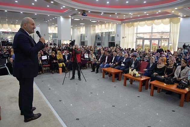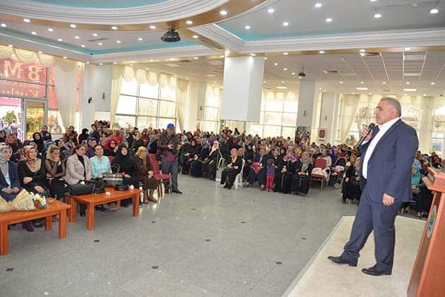 Programa konuşmacı olarak katılan Avukat Leyla Epözdemir, Dünya Kadınlar Gününü kutlayarak “ Kadınlar bir ağız olmuşlar, gök kubbeyi inletiyorlar. Kadınlar eşitlik istiyor, merhamet istiyor, sevgi istiyor. Kadınların çektiği çileleri biliyorsunuz. Tarih boyunca kadın bir toplumun gelişmesinde en az erkekler kadar, hatta onlardan daha fazla katkıda bulunmasına rağmen acılarla muhatap oldular. Bizi en fazla inciten kadın cinayetleridir. Peygamberimiz S.A.V Veda Hutbesinde kadına verilen değeri, ey insanlar kadınlar size Allah’ın emanettir diyerek belirtmiştir. Kadın hakları ilk olarak İslam kültüründen gelmiştir “ Diyerek, kadın hakları konusunda bilgilendirdi.