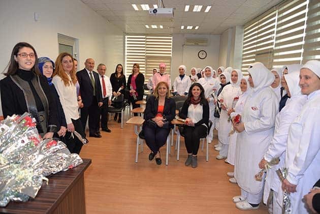 Başkan Püsküllü ve Meclis Üyeleri daha sonra İrfan Mektebi’ni ziyaret ederek, çalışan öğretmenlere karanfil verip 8 Mart Dünya Kadınlar Gününü kutladı.