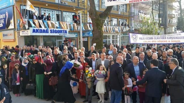 AK Parti milletvekili adayları, Hendek’te davullu zurnalı coşkulu bir kalabalıkla karşılandı.