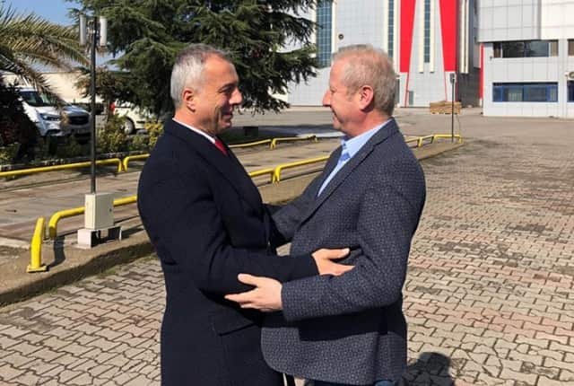 Büyük Coşkunlar Havai fişek fabrikası Yönetim Kurulu Başkanı Ali Rıza Coşkun, Genel Müdür Yaşar Coşkun ve fabrika çalışanlarını ziyaret etti.