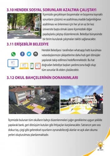 Hendek Belediyesi uhdesinde; semt ve bölge parklarında