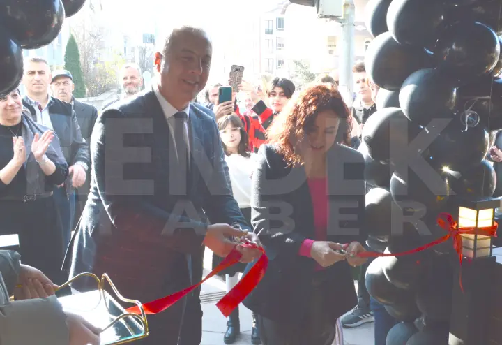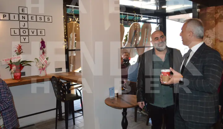Başkan Babaoğlu Kurdeleyi İşletme Sahibi Fulya Hacıoğlu ile birlikte kesmesinin ardından Coffee Shop iç bölümlerinde yer alan konuklarla birlikte kahve tat dı, cafe de incelemelerde bulundu.