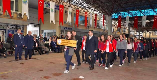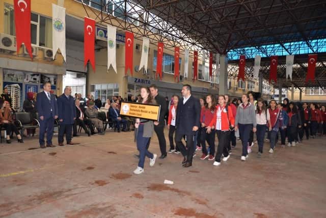 Kaymakamlık Makamındaki tebrikleri kabulün ardından Ticaret Merkezi’nde yapılan törene geçildi. Törene, Kaymakam İdris Akbıyık, Jandarma Komutanı Yzb. Deniz Kün, Belediye Başkanı İrfan Püsküllü, İlçe Emniyet Müdürü İsmail Baş, İlçe Spor Müdürü, Siyasi parti temsilcileri, gaziler, Sivil Toplum Örgütü temsilcileri, öğrenciler ve vatandaşlar katıldı.