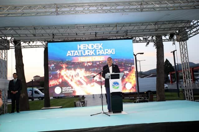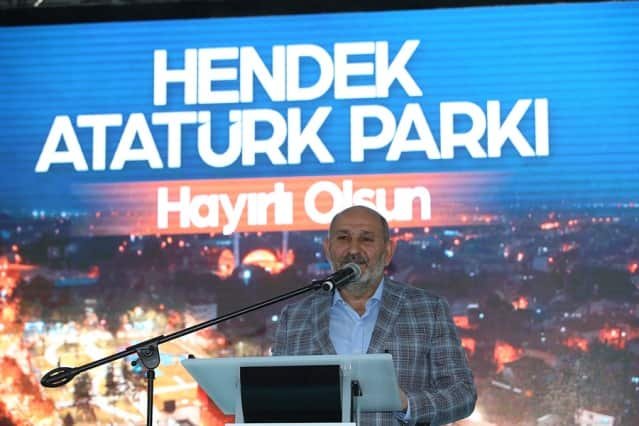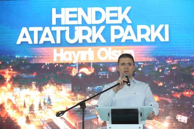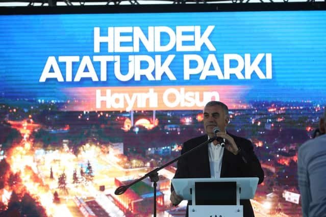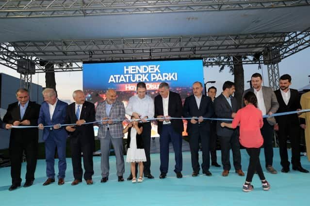 Hendek Atatürk Parkı’nın açılışında konuşan Başkan Toçoğlu, “Atatürk Parkı, ilçemizin yaşam standartlarını yükseltecek, hoşça vakitlerin adresi olacak. 20 bin metrekarelik alan üzerinde konferans salonu, yürüyüş yolları, havuzu, yeşil alanları, kafeteryası, çocuk oyun alanları, otoparkı ile ilçemizin yeni buluşma noktası olacak. Hayırlı olsun” derken; İl Başkanı Kılıç, “Tesisimizde insanımızın yaşam kalitesini arttırmak adına her şey düşünülmüş ve çok güzel bir proje ortaya çıkmış” dedi.