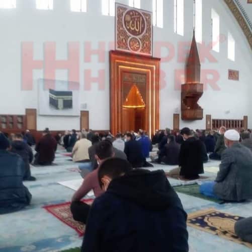 İlçe Merkezinde yer alan, birçok caminin bahçesi ve cami içi önceden dezenfekte edilerek, ibadete hazırlandı. Aylardır kapalı olan camiler cemaatle buluştu. Hava şartlarının yağışlı olması nedeniyle, dışarıda alınması planlanan cuma namazları, camii içine taşınarak eda edildi.