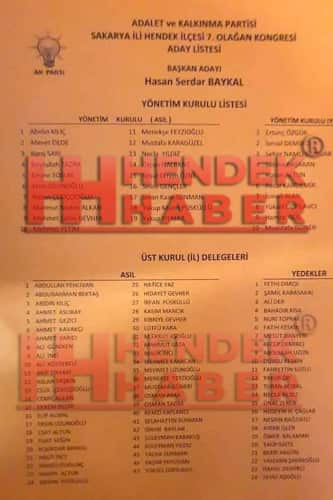 Gerçekleşen Kongre Sonrası Ak Parti Hendek Kurucu İlçe Başkanı Şenay Sakal ile Yerel Seçimler Öncesi Hendek Belediye Başkanlığına Aday olan ve sonrasında Ak Parti Hendek İlçe Başkanlığına atanan Hasan Serdar Baykal'ın listeleri kıyasıya yarıştı