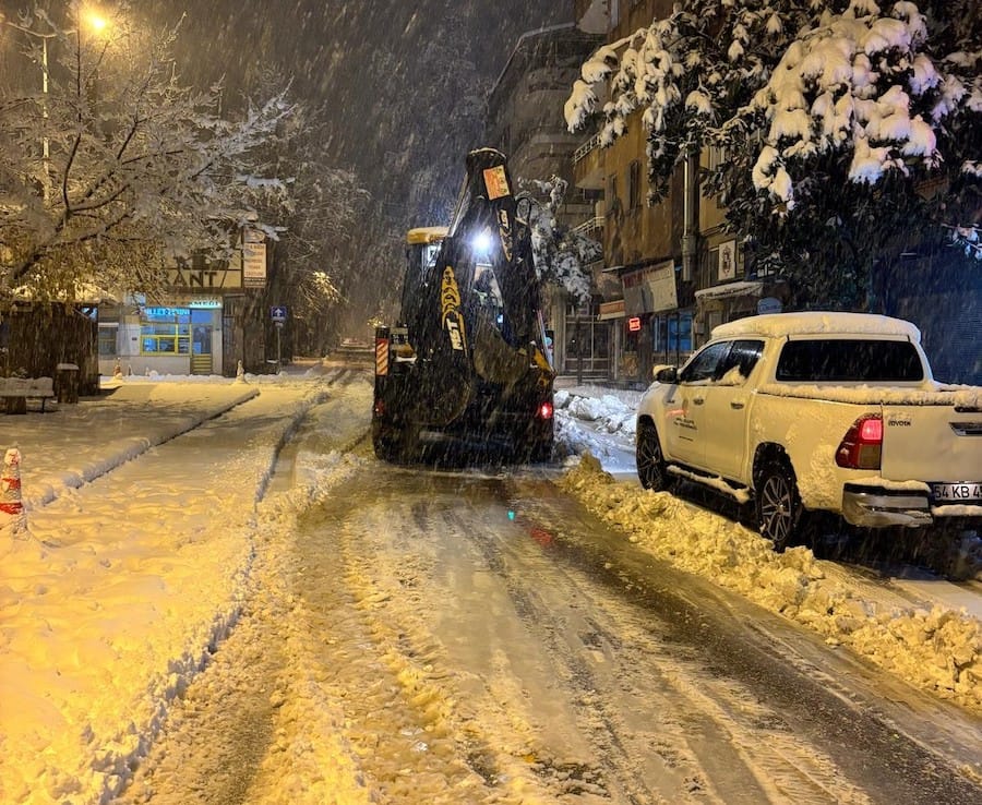 Kar yağışının başlamasıyla birlikte teyakkuza geçen Hendek Belediyesi ekipleri, şehrin tüm sokaklarında seferber oldu. Ekipler, sabahın ilk ışıklarına kadar çalışırken gelen tüm taleplere anlık müdahalelerde bulundu. Çalışmaların ilçe genelinde devam ettiği bildirildi.