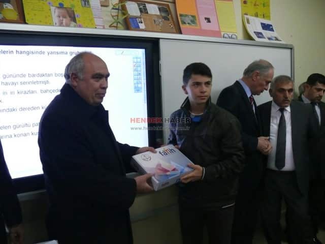 Tablet dağıtım törenine Sakarya Valisi Sayın Mustafa BÜYÜK ile birlikte Hendek Kaymakamı Sayın Mustafa AYHAN, Belediye Başkanı Ali İNCİ, Garnizon Komutanı Sayın Yzb. Hasan DAĞCI, İlçe Emniyet Müdürü Sayın Metin ÇETGER, İl Milli Eğitim Müdürü Sayın Yavuz Selim SANDIKÇI, İlçe Milli Eğitim Müdürü Sayın Sabri Doğan ve okul idarecileri katıldı.
