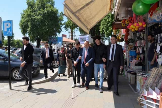 Program öncesi Hendek Belediye önünden Osman Yılmaz Caddesi’ne kadar farkındalık yürüyüşü yapıldı. Yürüyüşte görme ve bedensel engelli vatandaşlar Osman Yılmaz Caddesi’nde yürürken, yanlış park edilen araçlara uyarıcı yazılar koydular.