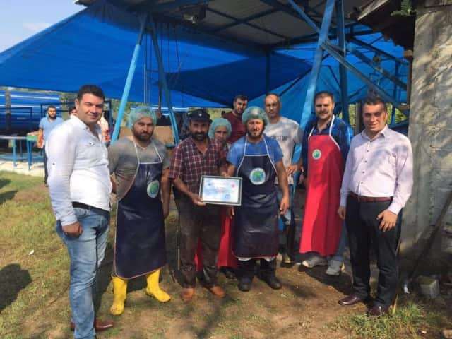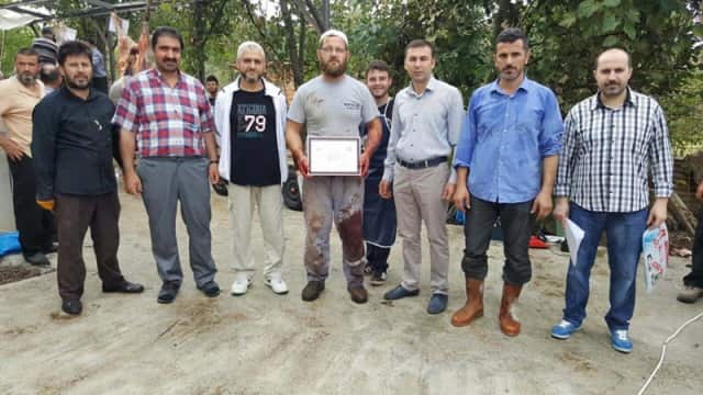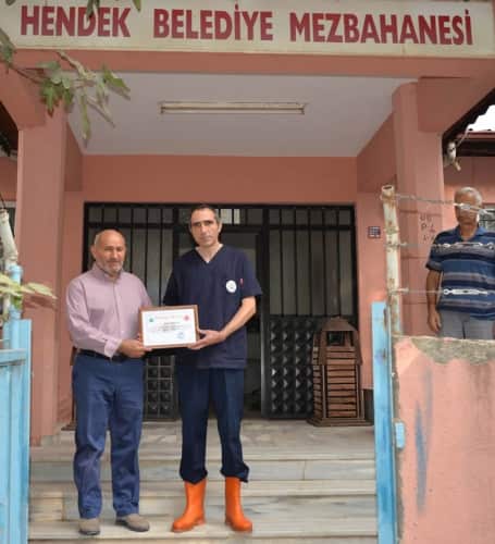 Kesimhane ziyaretlerinde Başkan Püsküllü ve başkan yardımcıları, kesimhane sahiplerine kurallara uygun ve çevre temizliğine katkıda bulundukları için teşekkür belgesi verdi.