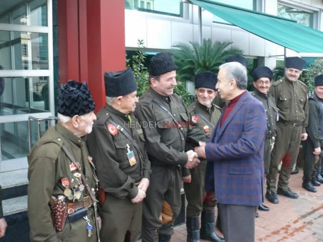 Vali Büyük'e Hendek Kuvayii Milliye heyetinin kalmış olduğu otele gelerek hoşgeldin dileklerinde bulundu.