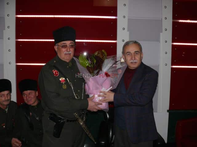 Hendek Kaymakamı Mustafa Ayhan ve Kuvayi Milliye Onursal Başkanı Rüştü Çürüksulunun iletmiş olduğu hediyeler takdim edildi.