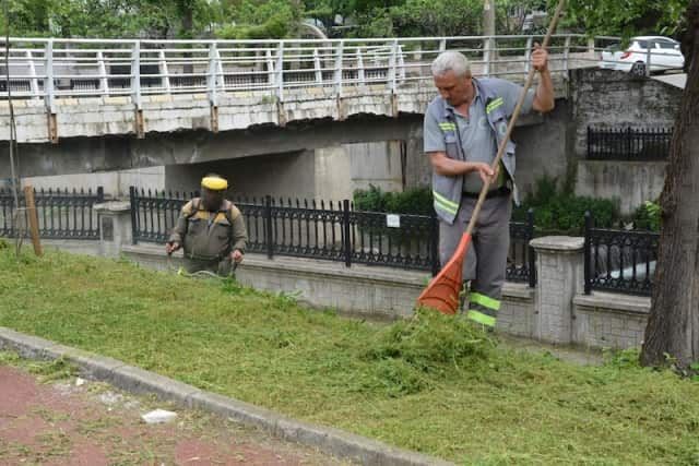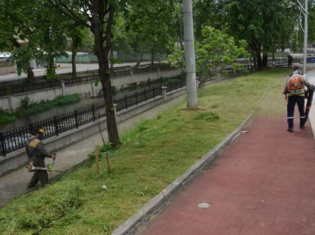 Tam kapanmaya rağmen Hendek’in bayramı güzel bir şekilde karşılaması için çalışmalarını sürdüren ekipler, mahallelerde, çocuk parklarında ve tüm alanlarda ot biçme, dal budama, temizlik çalışmalarına devam ediyor