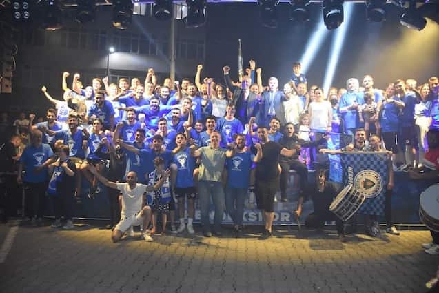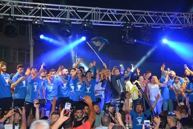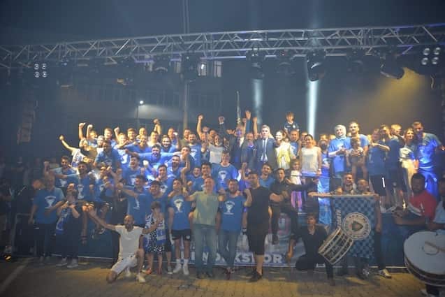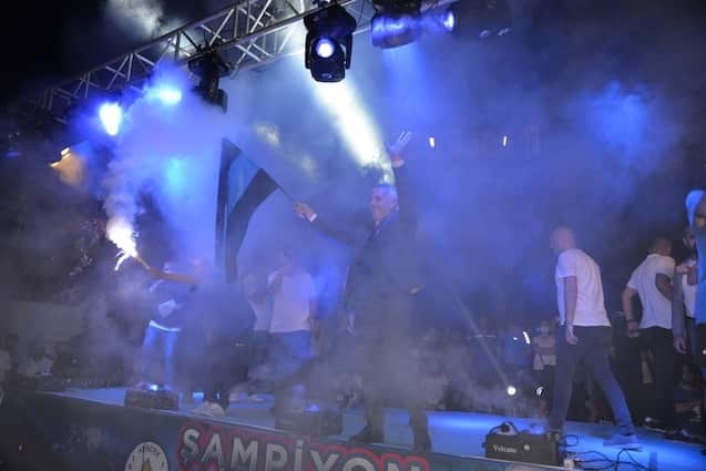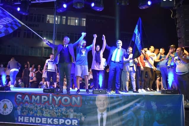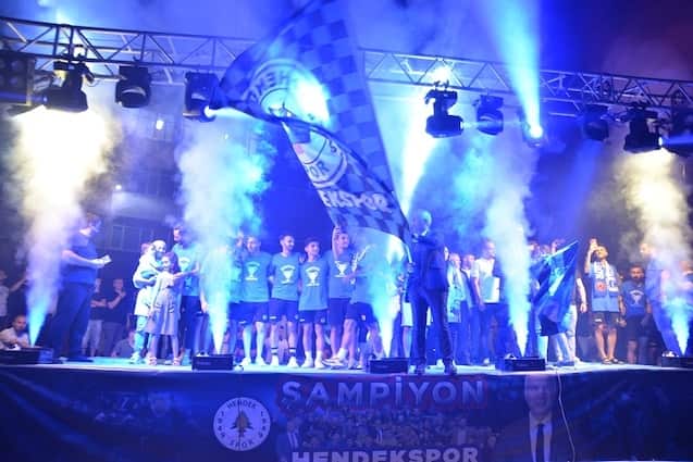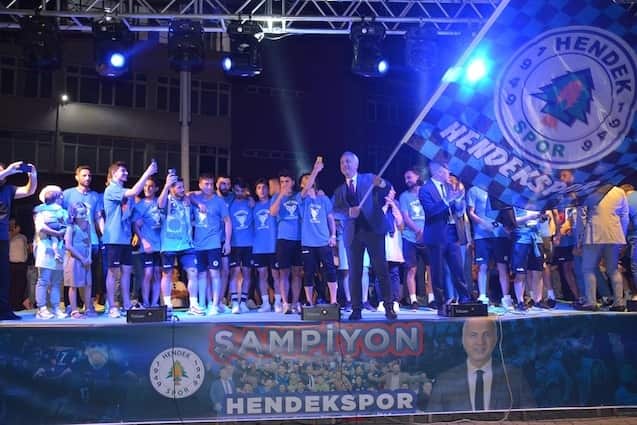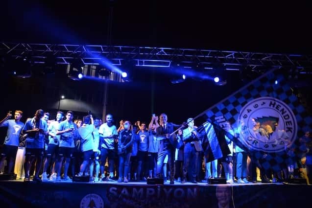 Işık gösterileri, meşaleler, sloganlar ve şarkılar eşliğinde Başkan Babaoğlu, Kulüp Başkanı Adil Karabulut, Antrenör Talip Toprak, yöneticiler, futbolcular ve kulüp çalışanları tek tek sahneye davet edildi. Başkan Babaoğlu, Kulüp Başkanı Adil Karabulut, yöneticiler, futbolcular Hendeklilerle hep birlikte zafer şarkılarını seslendirdi, ‘Şampiyon Hendek’ sloganları attı.