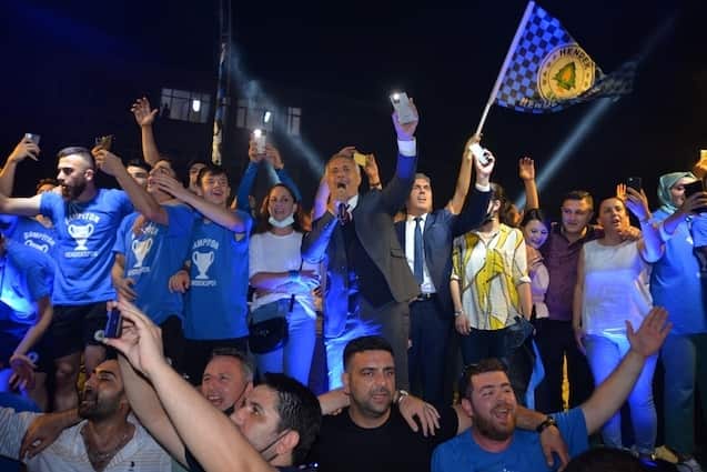 Hendek’te binlerce taraftar sokağa dökülürken, şehir meydanı şampiyonluk şarkılarıyla inledi. Hendek Belediyesi tarafından Belediye otoparkında yapılan kutlama organizasyonu için alanı dolduran Hendekliler, Yalova’dan dönen şampiyonu şarkılarla karşıladı. Hendekspor takım otobüsü şehre girdiği andan itibaren futbolcular büyük sevgi ve coşku seline tutuldu. Başkan Babaoğlu, yöneticiler ve futbolcular alana giriş yaptığında ise yer gök Hendekspor diye inledi.