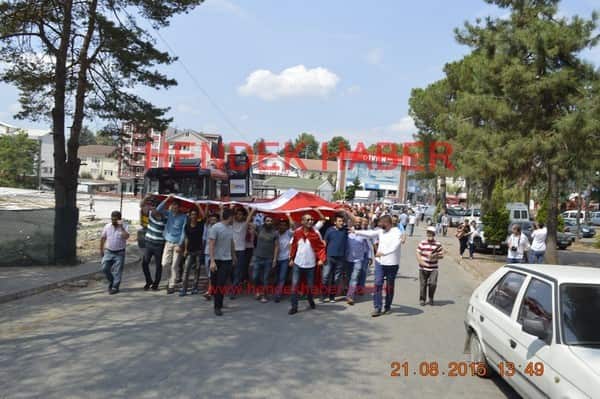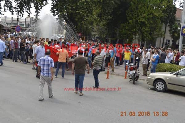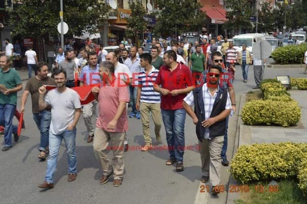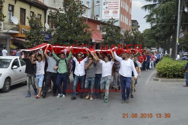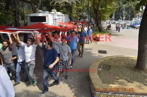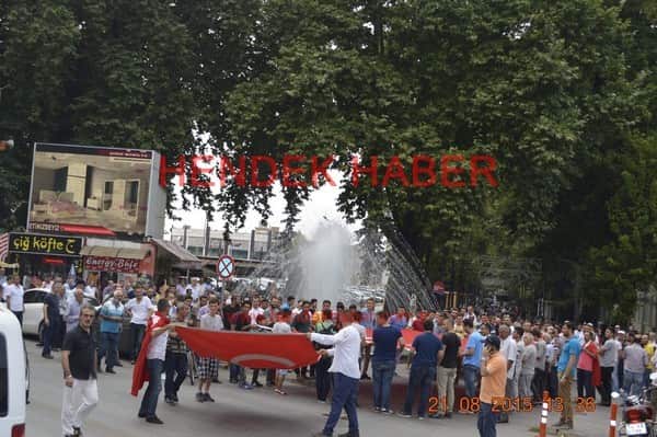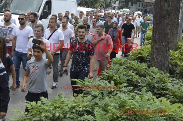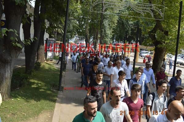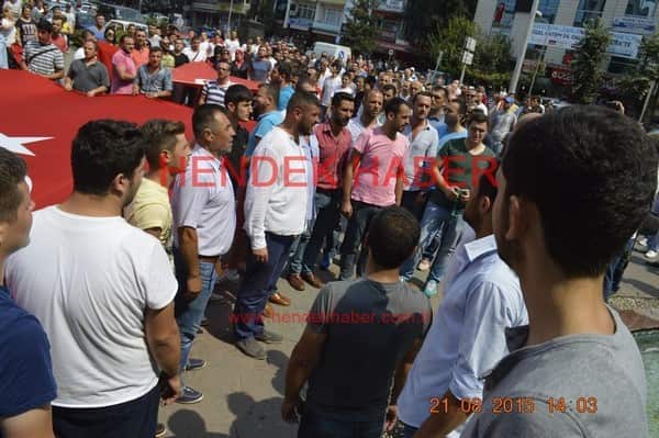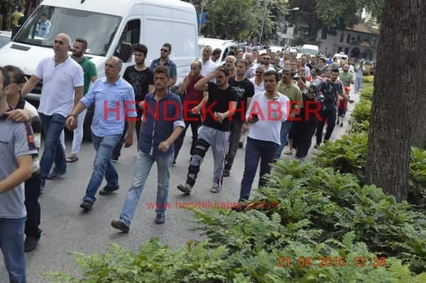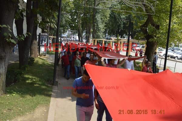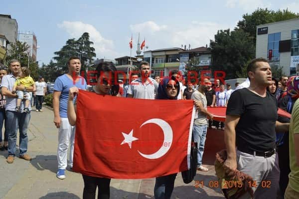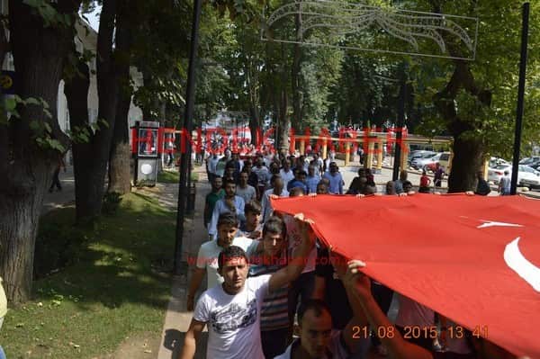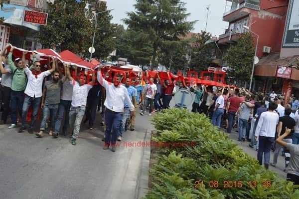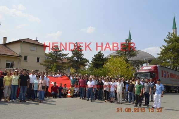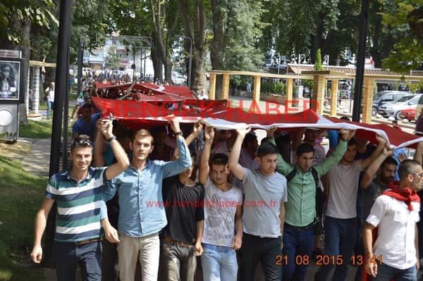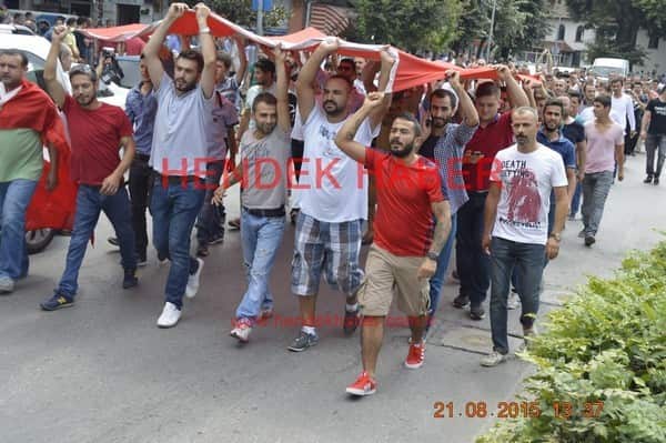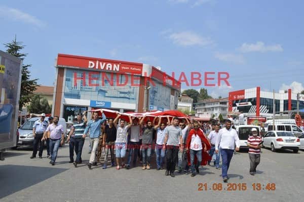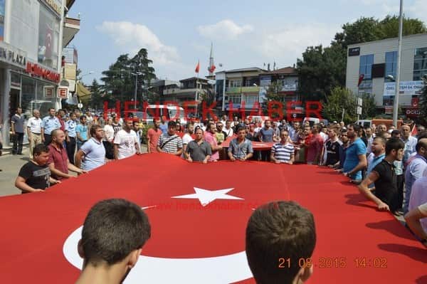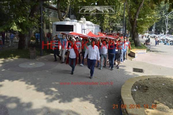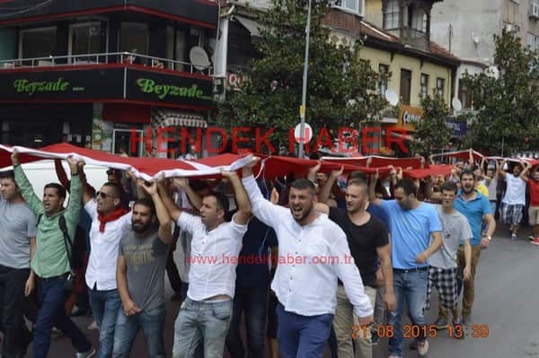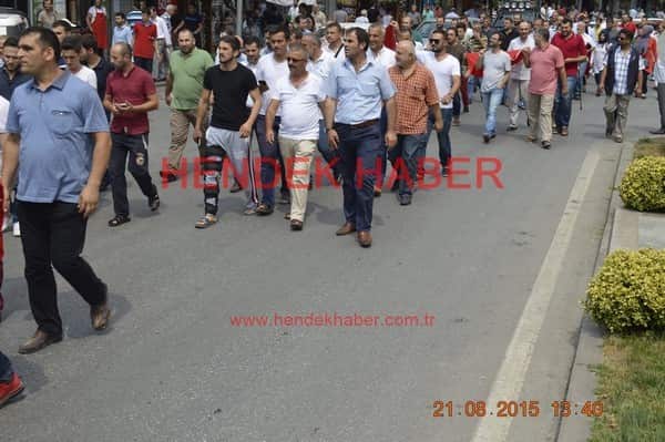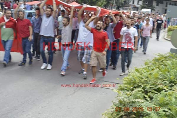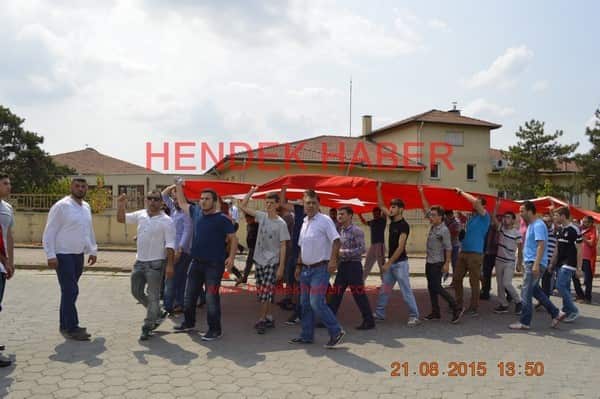 Hendek ilçesinde faaliyet gösteren siyasi parti temsilcilerinin yanı sıra, çeşitli oda başkanları ve gençlik kolları başkanlarının da katıldığı yürüyüşte, bayraklar açıldı, lanetler okundu.