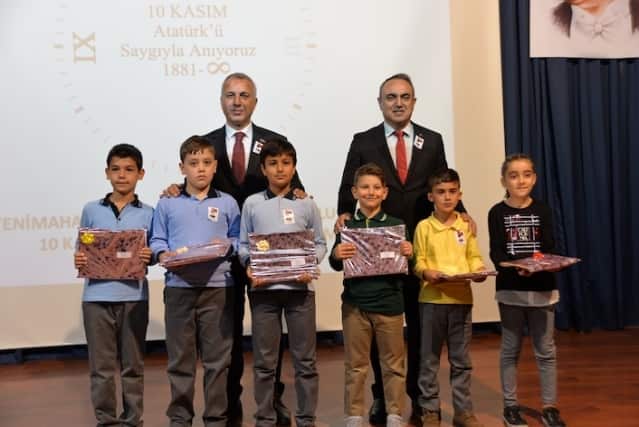 Öğrencilerin hazırladığı Atatürk temalı gösteriler büyük alkış toplarken, anma programı sonunda Kaymakam Acır ve Başkan Babaoğlu, Atatürk konulu yarışmalarda derece alan öğrencilere hediye takdim etti.