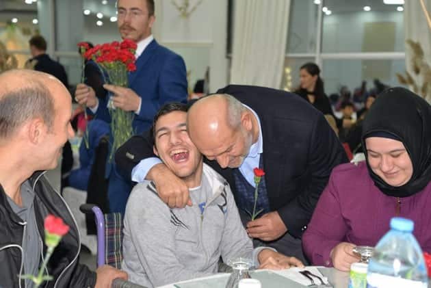 Kaymakam Orhan Burhan ve Hendek Belediye Başkanı İrfan Püsküllü masaları tek tek gezerek misafirleri selamlayıp, Dünya Engelliler Gününü kutlayarak karanfil verdi.