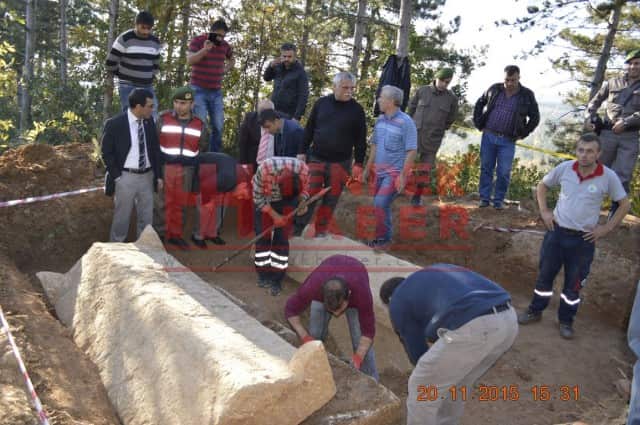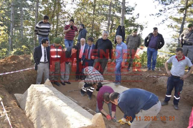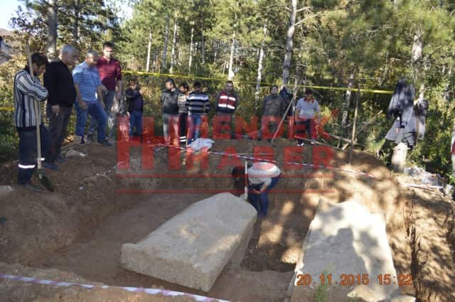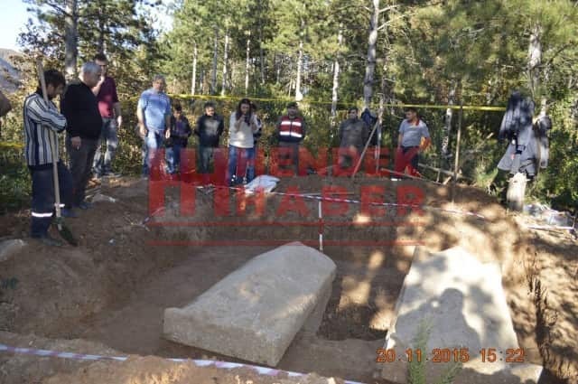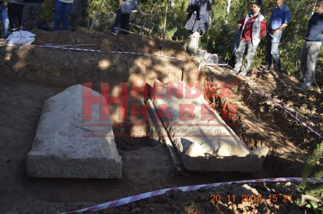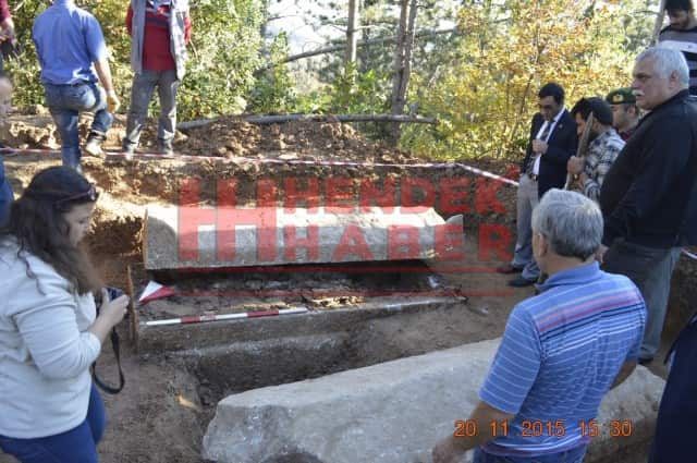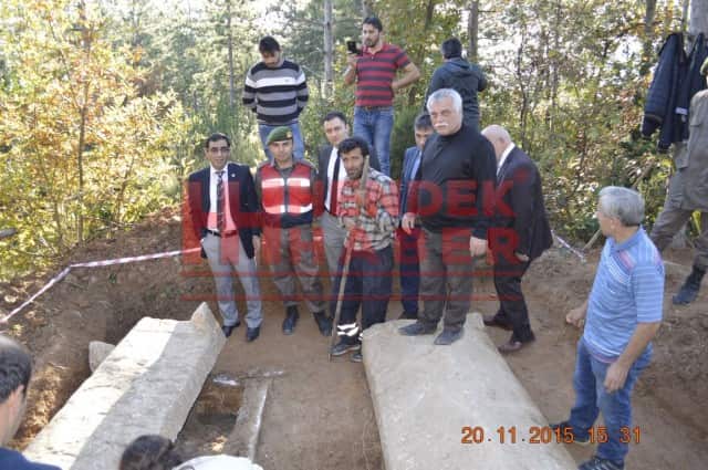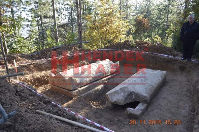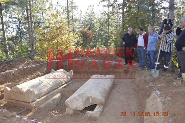 Definecilerin kazı yaptığı bölgede eski Roma dönemine ait olduğu belirtilen 2 bin yıllık lahit mezar olduğu öğrenilen iki mezar belirlendi. Geç saatlerde yapılan operasyon sonucunda jandarma ekipleri Sabah saatlerine kadar lahit mezarların bulunduğu bölgeyi koruma altına aldı.,