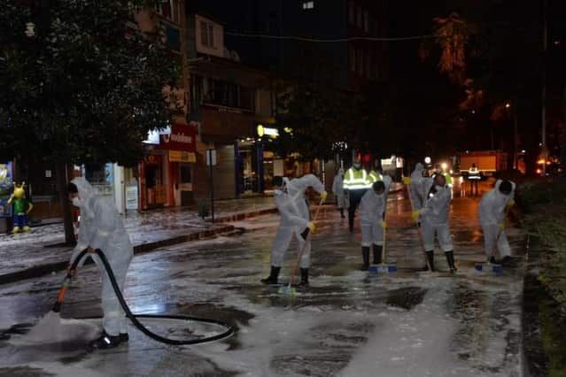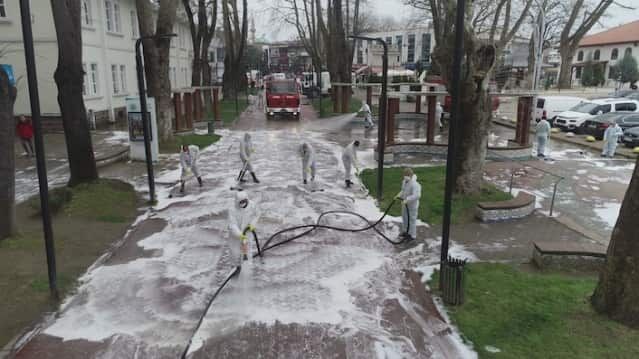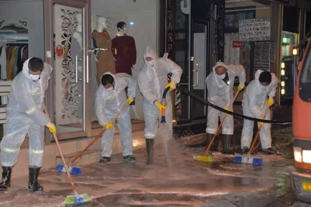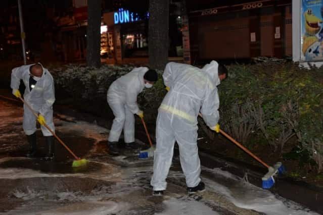 Sokakların köpüklü suyla yıkanması için çalışmaların günlük olarak belirlenen program dahilinde devam edeceği açıklandı.