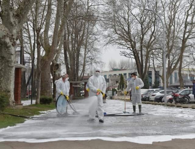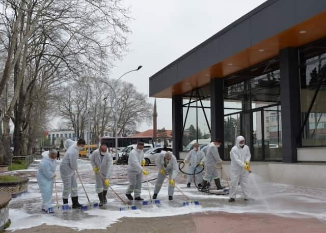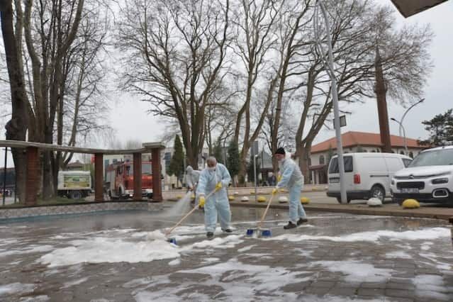 Alınan tedbirler kapsamında uygulanan tüm yöntemlerin uzmanlar tarafından onaylandığı ve standartlara uygun dezenfektan kullandığı ifade edildi. Caddelerin ve sokakların köpüklü suyla yıkama çalışmalarının her gün gece ve gündüz programları olarak devam edeceği açıklandı.