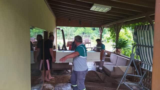 Ekipler Sahada su basan evlerin eşyalarının dışarı çıkrılıp, zeminde yer alan su
