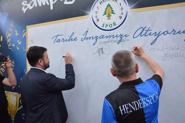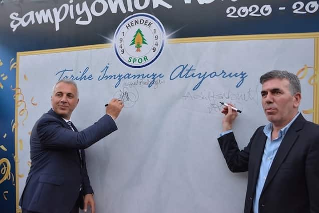 Bölgesel Amatör Ligde (BAL) şampiyonluğa ulaşan ve 3.Lige yükselen Hendekspor adına şampiyonluk yemeği düzenlendi. Hendek Belediye Başkan Turgut Babaoğlu, Kulüp Başkanı Adil Karabulut, Yönetim, teknik heyet, futbolcular ve eski yöneticiler tarihi gecede ‘Şampiyonluk Hatırası’ alanına imza attılar.