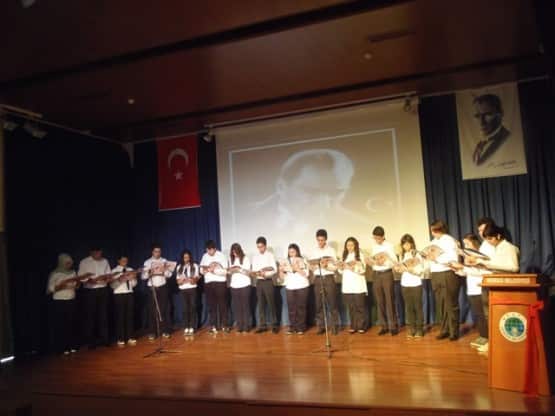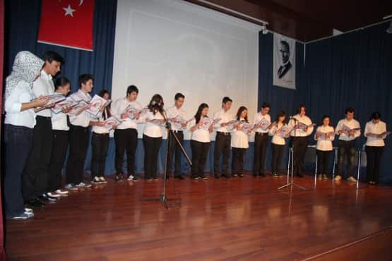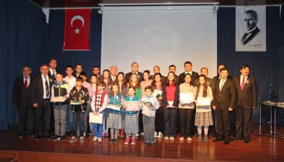 Programda 10 Kasım nedeniyle düzenlenen şiir, kompozisyon ve resim yarışmasında dereceye giren öğrencilere çeşitli hediyeler verildi.