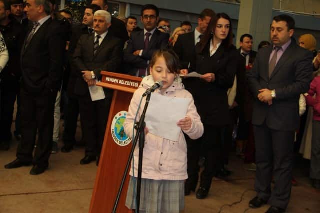 Tören Atatürk Anıtı’na çelenk koyulması ile başlandı. 23 Nisan Ulusal Egemenlik ve Çocuk Bayramı havanın yağışlı olması nedeni ile Hendek Ticaret Merkezi’nde devam etti. Saygı duruşu ve İstiklal Marşı’nın okunmasının ardından Kaymakam Mustafa Ayhan, Garnizon Komutan Yüzbaşı Hasan Dağcı ve Belediye Başkanı İrfan Püsküllü tüm okulları ve halkı selamladı.