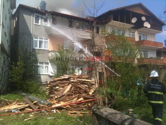 Yangın İçten içe sürerken itfaye etipleri nin müdahalesi çatının yanmasını durduramadı, yan binalara sıçraması önlendi.
