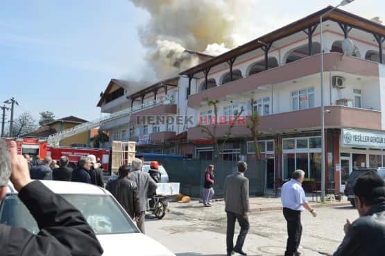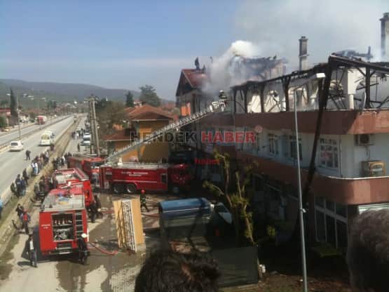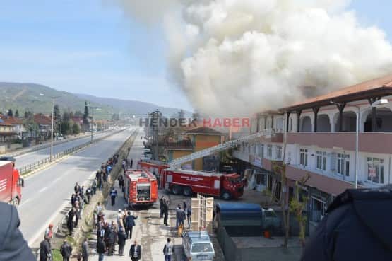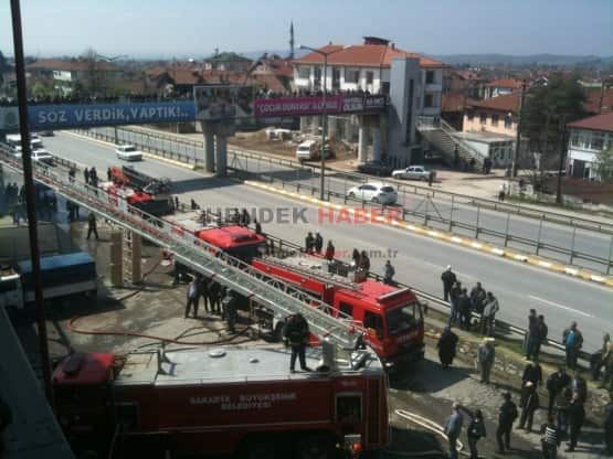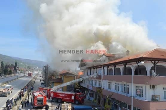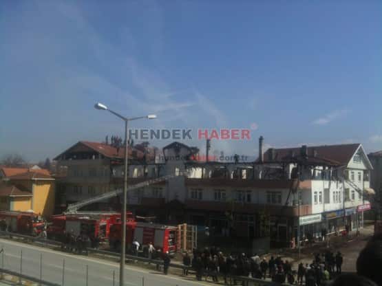 hendek d-100 karayolu üzerinde bulunan binada yangın cıktı, meraklı gözler yangını saatlerce izledi.