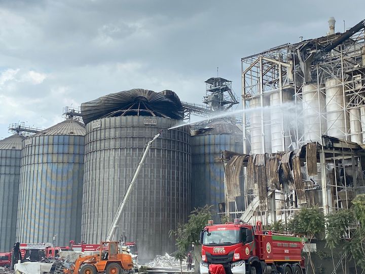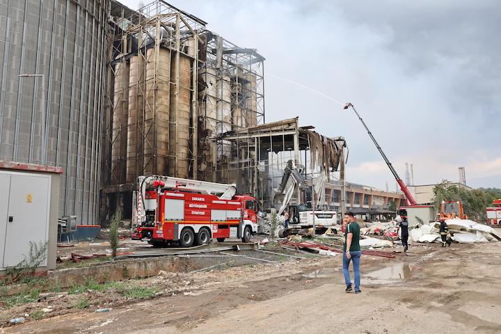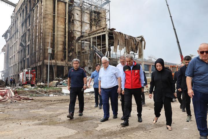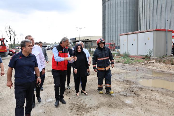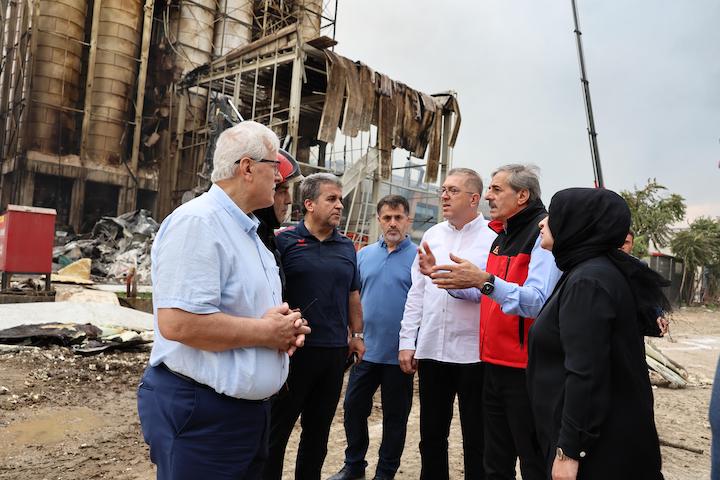 Başkan Alemdar, yangında büyük hasar alan üretim silolarını yakından inceledi ve yanan alandaki risk analizi için uzman ekiple birlikte hassas bir çalışma yürüttü. 56 itfaiye eri, 20'ye yakın araçla bölgede yangına müdahale etti ve yangın kontrol altına alındı. Şu anda imalat filolarında soğutma çalışması yürütülüyor.