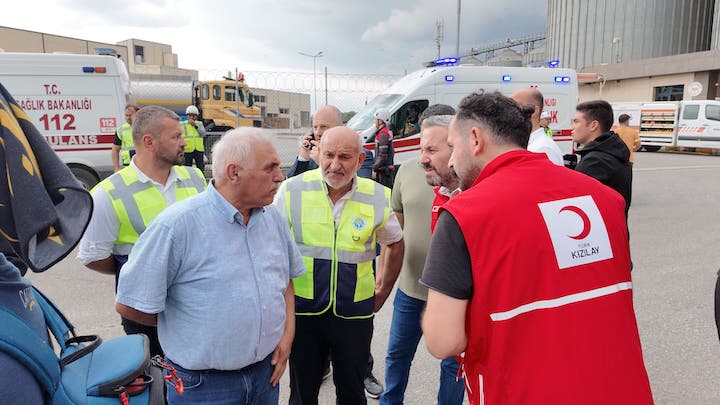 Başkan Alemdar, Büyükşehir'in bölgedeki yangına müdahale sürecini yönetmeye devam ederken diğer tarafta yaralı işçilerin aileleriyle görüştü, taleplerini dinledi.