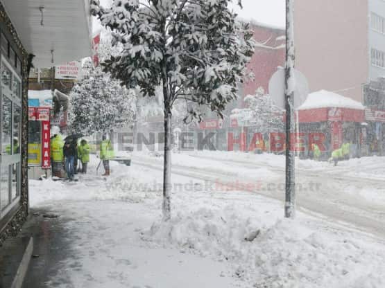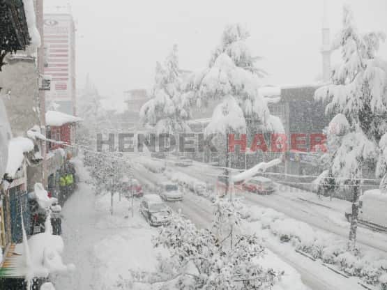 Hendek 8 Ocak Salı sabahıyla karla uyandı... Hendek İlçe Merkezinde kar temizleme çalışmaları sürdürülürken.