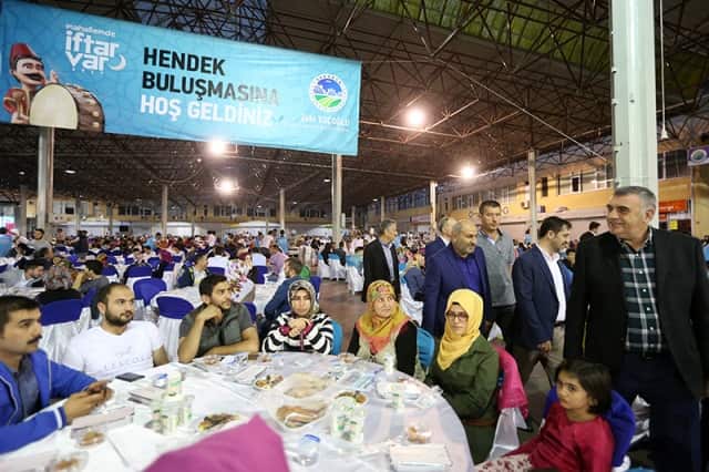 Büyükşehir Belediye Başkanı Zeki Toçoğlu beraberinde Hendek Belediye Başkanı İrfan Püsküllü ile birlikte Hendekli vatandaşların masalarını tek tek ziyaret edip Ramazan ayını tebrik etti. Eyüp Sultan Camii Başimamı Metin Çakar’ın Kuran-ı Kerim tilavetiyle gönüllerin pasını sildiği akşamda okunan ezan sonrası oruçlar açıldı, dualar edildi. İftar sonrası kurulan platformda Hayali Seçkin Bayramoğlu çocuklara unutamayacakları bir akşam yaşattı.
