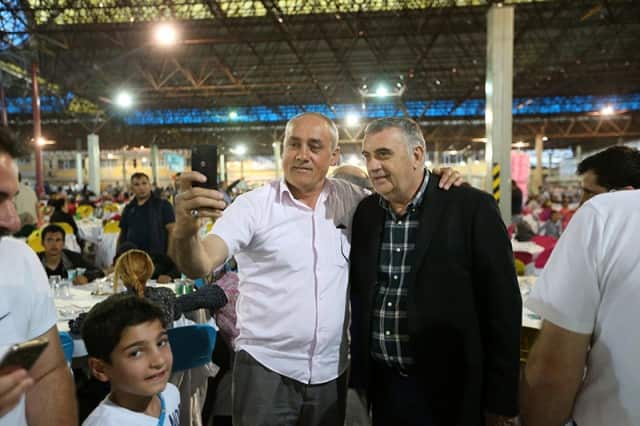 Sakarya Büyükşehir Belediyesi tarafından düzenlenen “Mahallemde İftar Var” programları Hendek’te devam etti. Hendek Kapalı Pazar Yeri’nde gerçekleştirilen buluşmada Büyükşehir Belediye Başkanı Zeki Toçoğlu’nun yanı sıra AK Parti İl Başkanı Fevzi Kılıç, AK Parti Hendek İlçe Başkanı Ali Kemal Sofu, Hendek Belediye Başkanı İrfan Püsküllüü, meclis üyeleri, muhtarlar ve binlerce Hendekli yer aldı.