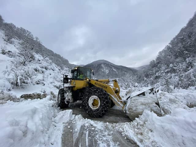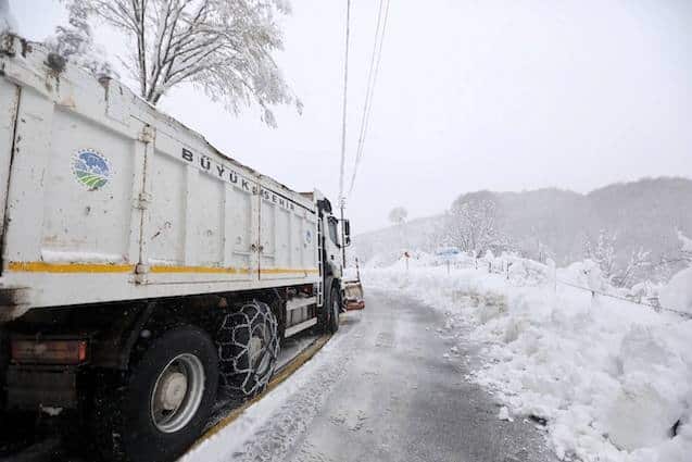 Karla mücadele çalışmalarına ilişkin paylaşılan raporda, “15 Şubat Pazartesi günü sabah 8.30 itibariyle 65 mahalleye ulaşım sağlanamıyordu. Büyükşehir Belediyesi ekiplerinin çalışmaları neticesinde 51 mahallede yollar ulaşıma açıldı. Yoğun bir şekilde devam eden karla mücadele çalışmalarının yanı sıra olası buzlanmalara karşı tuzlama da yapılıyor” denildi.