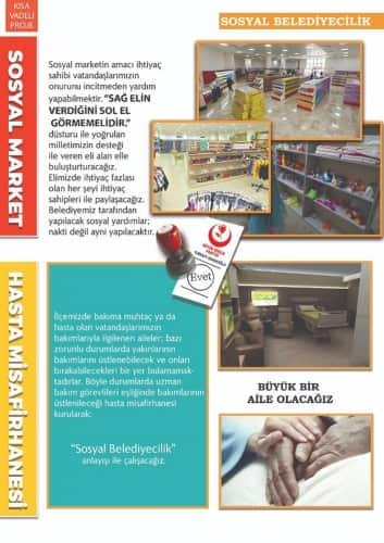 İlçemizde bakıma muhtaç ya da hasta olan vatandaşlarımızın bakımlarıyla ilgilenen aileler; bazı zorunlu durumlarda yakınlarının bakımlarını üstlenebilecek ve onları bırakabilecekleri bir yer bulunmaktadırlar. Böyle durumlarda uzman bakım görevlileri eşliğinde bakımlarının üstlenebileceği hasta misafirhanesi kurularak; “Sosyal Belediyecilik” anlayışı ile çalışacağız.