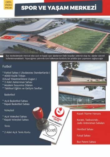 İlçe merkezimizde mevcut olan açık ve kapalı spor alanları nın fiziki koşulları yetersiz olup bu alanlar işlevsel kullanılamamaktadır. Yapacağımız yatırımla tüm halkımızın konforlu bir şekilde spor yapmasını sağlayacağız.