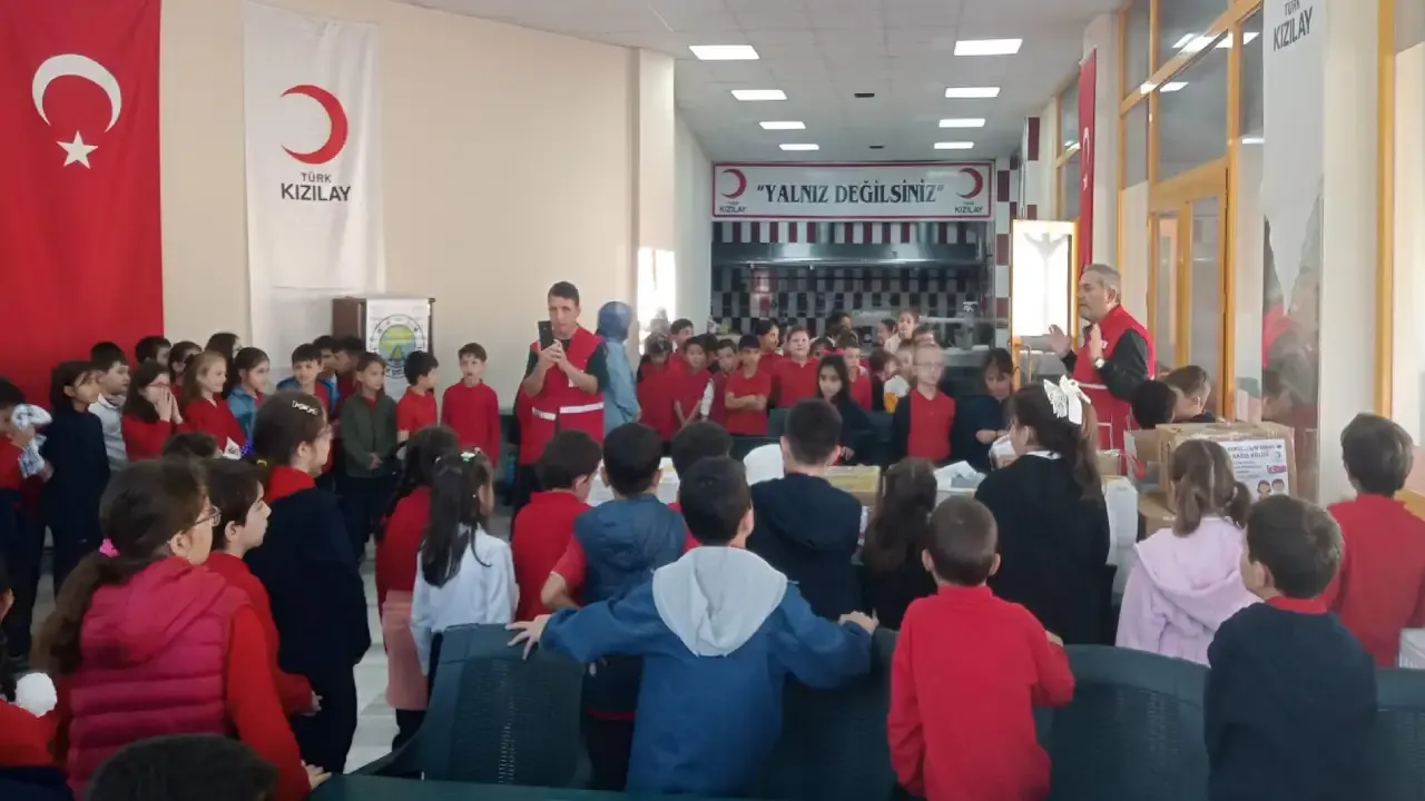 Ziyaret kapsamında öğrenciler, yanlarında getirdikleri gıda bağışlarını Kızılay’a teslim ederek anlamlı bir dayanışma örneği sergiledi.