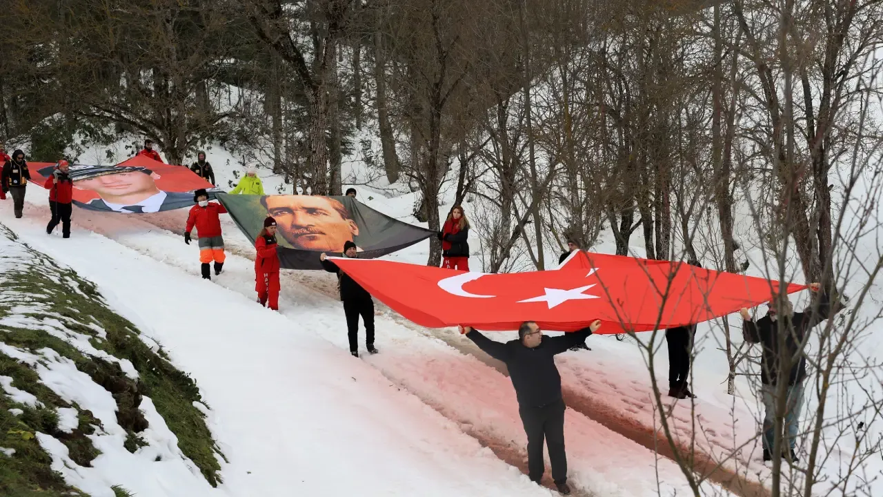 Soğuk ve karlı havaya aldırış etmeyen katılımcılar, zirvede gerçekleştirilen anma ve saygı duruşunun ardından bayrak ve posterlerle vefa duygusunu güçlü bir şekilde ortaya koydu. Etkinlik, zirveden kontrollü bir şekilde inişle tamamlandı.