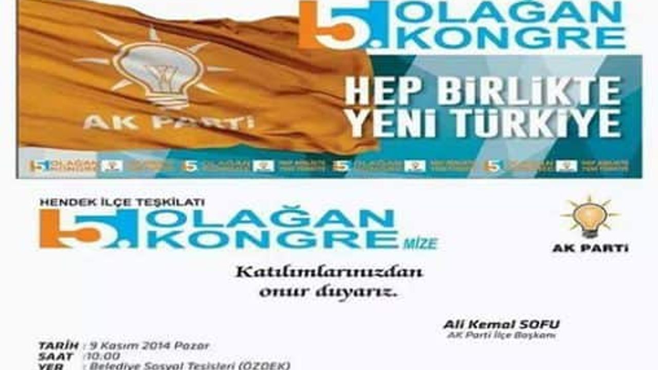 <span style="font-size: 18px;"> <span style="font-family: 'Times New Roman', serif;">Ak Parti Hendek İlçe Teşkilatı’nın yarın saat 10.00’da Belediye Sosyal Tesisleri’nde yapılması planlanan 5. Olağan Kongresi ileriki bir tarihe ertelendi. Genel merkezce ertelenen kongrenin ne zaman gerçekleşeceğiyse henüz açıklanmadı.</span></span> <p class="MsoNoSpacing"><span style="font-size:8.0pt;font-family:"Times New Roman","serif""><o:p></o:p></span></p>